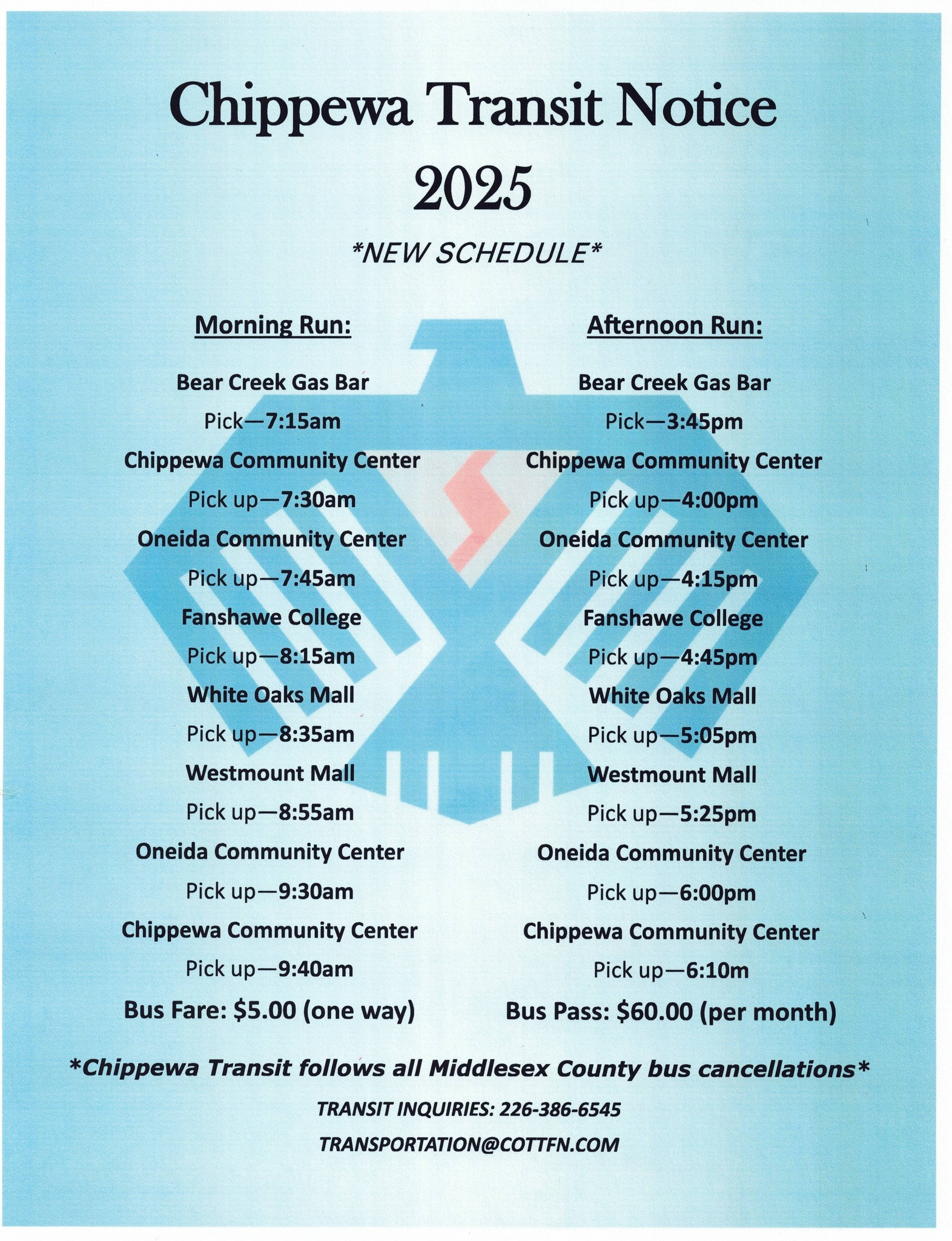 Chippewa Transit follows all Middlesex County bus cancellations.